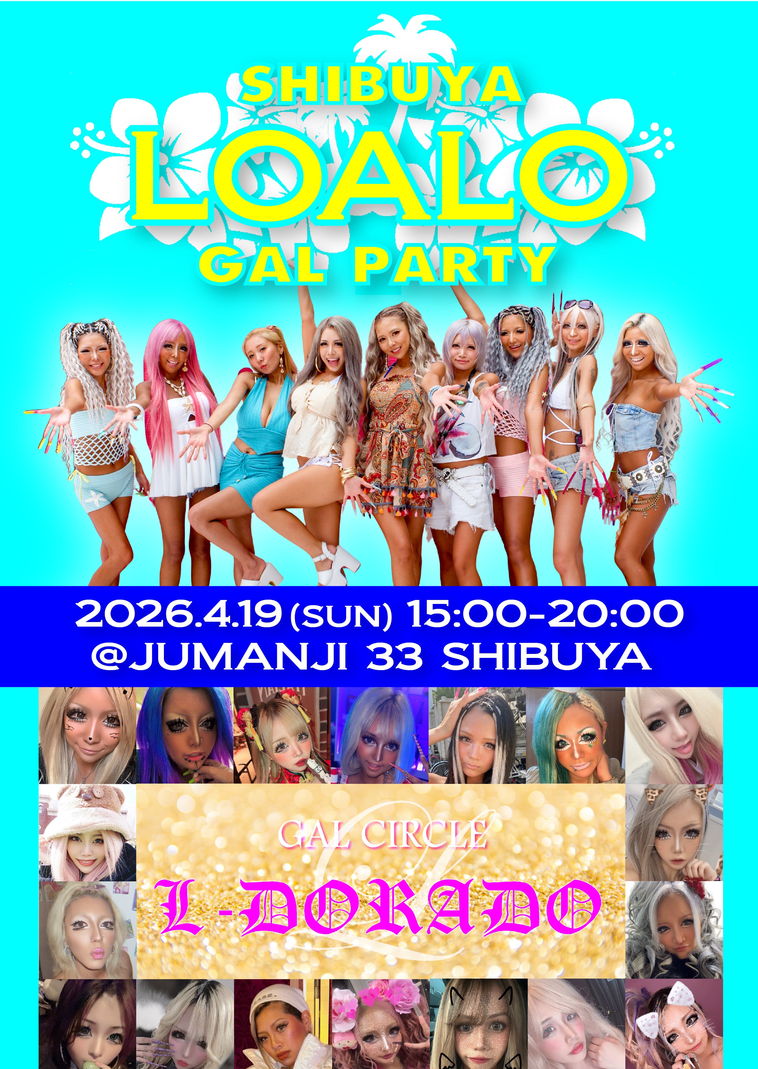 4月19日(日)15:00~20:00に渋谷JUMANJI 33にて開催されるイベント「渋谷LOALO GAL PARTY×L-DORADO」のVIPシート事前予約プランです。